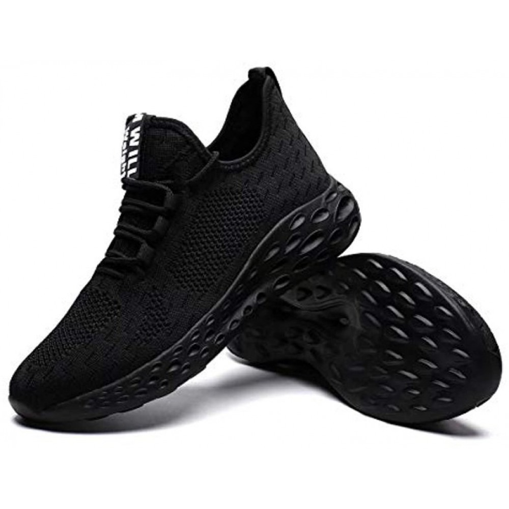 Mens Running Shoes Slip On Walking Shoes Fashion Breathable Sneakers Mesh Soft Sole Casual Athletic Lightweight All-Black