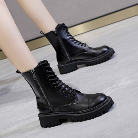 Autumn New Martin Boots Female Round Toe Thick Bottom Tube Black Short Boots Trend