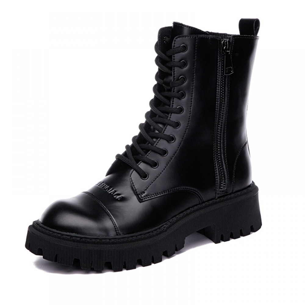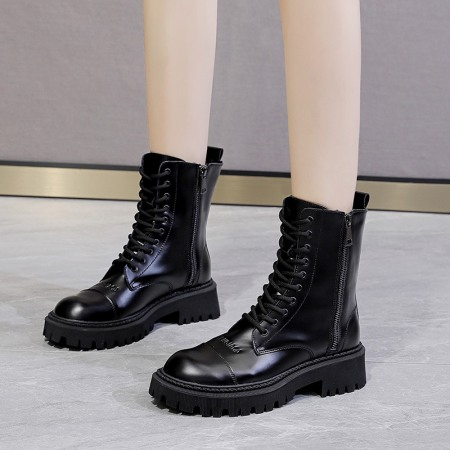 Martin Boots Women's Autumn New Thick-Soled Leather Boots Round Toe Thin Boots Mid-Tube Womens