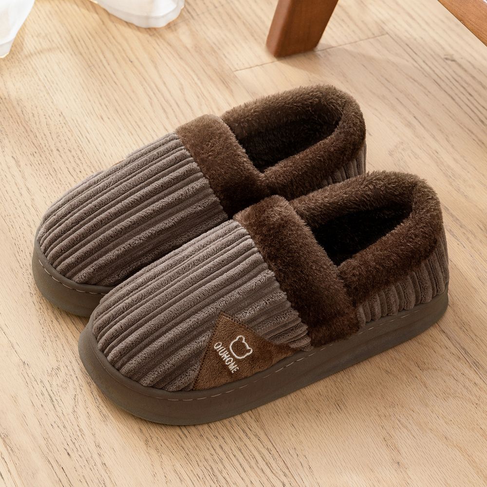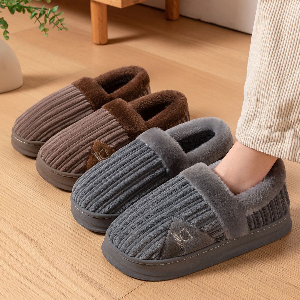 Men's Winter Indoor Home Non-Slip Thick-Soled Plus Velvet Slippers With Heel